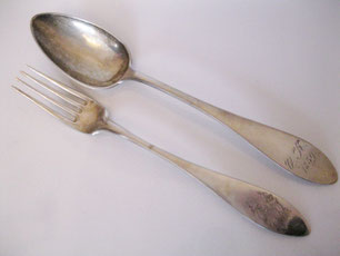 Menülöffel,Menügabel, spätes Biedermeier, Silber, Halbmond
