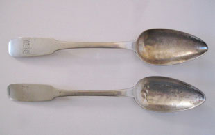 2 antike Biedermeier- Esslöffel/Menülöffel, 12 Lot Silber, Spatenform