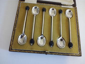 6 Mokkalöffel/Moccalöffel versilbert, mit Kästchen