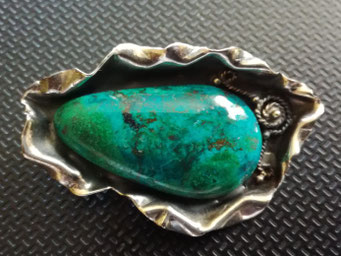925 Silber-Vintage- großer Anhänger mit Türkis, auch als Brosche tragbar