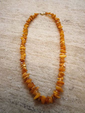 ältere lange Bernsteinkette, honigfarben, 130 Steine