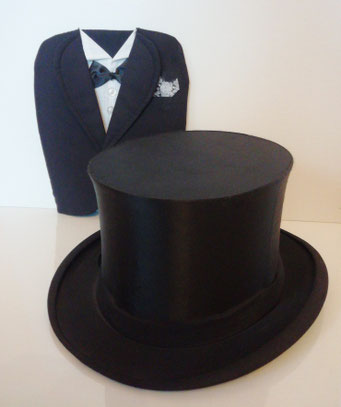 Druckfrei Seiden-Klapphut Chapeau Claque mit Vorhemd/Hemdbrust/Chemisette