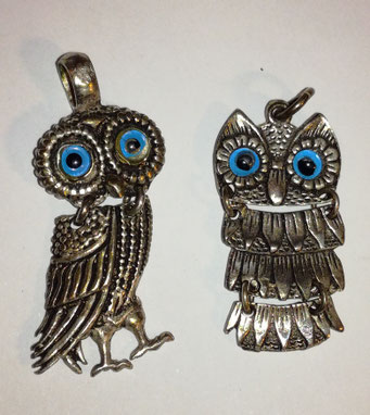 2 Vintage Anhänger Eulen, beweglich,925 Silber