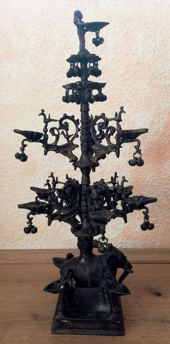 alte Bronze Pagode, Räuchergefäß mit Elefant, Vögeln, Figuren, Glöckchen