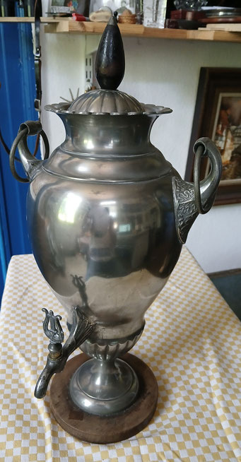 Antike Dröppelminna, Zinn/ Holz, 1.Hälfte 19. Jahrhundert