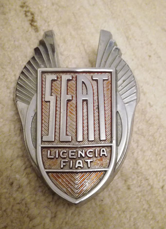 Vintage Emblem/Markenschild Seat Licencia Fiat, Seat 1400, 50er Jahre