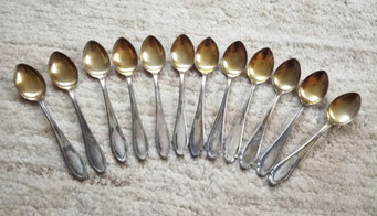 12 antike Kaviarlöffel, 800 Silber, Laffen vergoldet