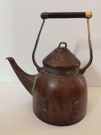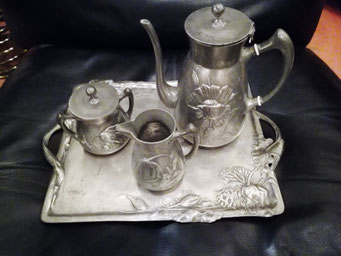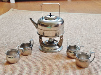 WMF Straußenmarke, Teekanne mit Rechaud und 4 Teegläsern, Art Deco