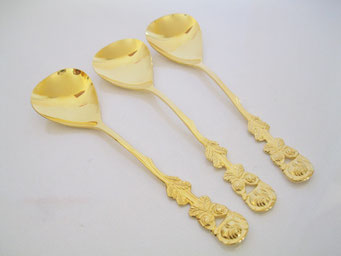 3 vergoldete Löffel/Zuckerlöffel, Hildesheimer Rose