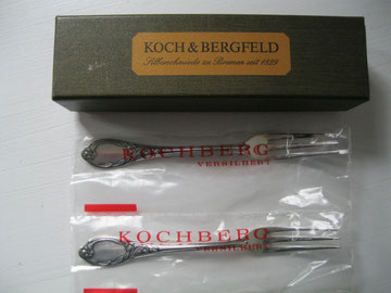 Koch & Bergfeld, 2 Kuchengabeln, Modell Rokoko,90er Silberauflage